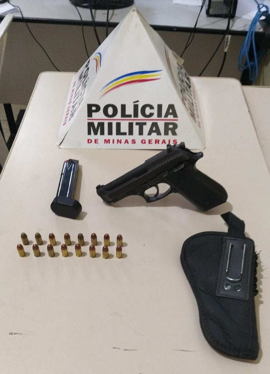 Durante buscas, os policiais encontraram uma pistola calibre .380, 16 munições intactas calibre .380 e um coldre. Conforme relatado pela PM, O homem possui passagens por tráfico ilícito de drogas e porte ilegal de arma de fogo.