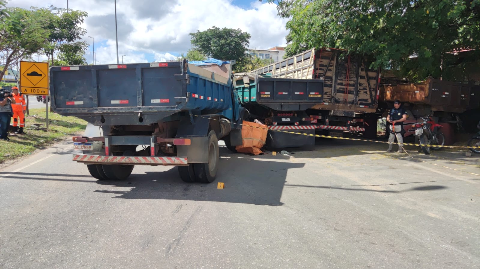 Um acidente envolvendo dois caminhões, do modelo basculante, deixou uma vítima fatal na manhã desta quarta-feira (01/03) em Governador Valadares, no Leste de Minas Gerais. Uma câmera de segurança próxima do local registrou o acidente.