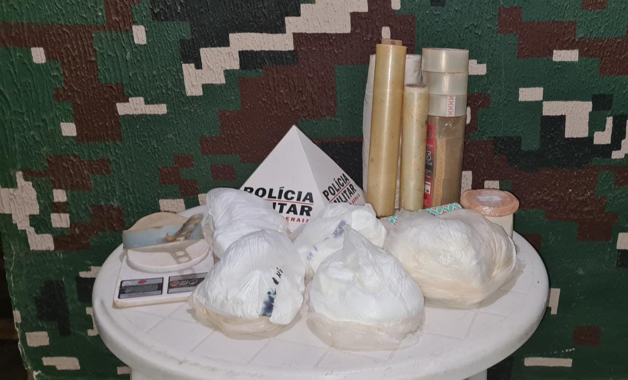 Os policiais do Grupo Especializado de Policiamento em Áreas de Risco (GEPAM) apreenderam cerca de seis quilos de cocaína e material para embalar a droga, A ocorrência aconteceu na zona rural de Santana do Paraíso-MG. Autores fugiram.
