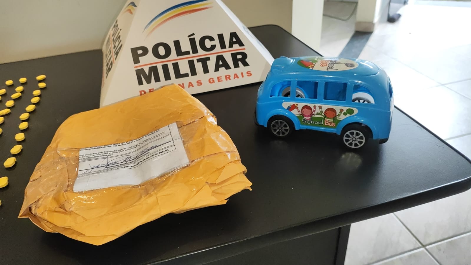 180 comprimidos de ecstasy Durante a Operação Férias Seguras 2024, com o objetivo de coibir crimes violentos bem como o tráfico de drogas, os militares patrulhavam pela Rua Mato Grosso, no bairro de Lourdes, em Governador Valadares, quando se depararam com um indivíduo em atitude suspeita, segurando uma caixa. Ao perceber a presença policial, o indivíduo saiu correndo para dentro de uma residência e de imediato, os militares partiram atrás e o viram jogando a caixa sobre um telhado. O pacote foi foi arrecadado e aparentava ser uma encomenda entregue via correios. Ao averiguar o que havia dentro da caixa, os militares encontraram um carrinho de brinquedo e dentro deste carrinho havia um pacote contendo 180 comprimidos de substância semelhante a ecstasy( cada comprimido no formato de abacaxi). A droga foi apreendida e o jovem, de 21 anos, foi preso e encaminhado para a Delegacia de Polícia.