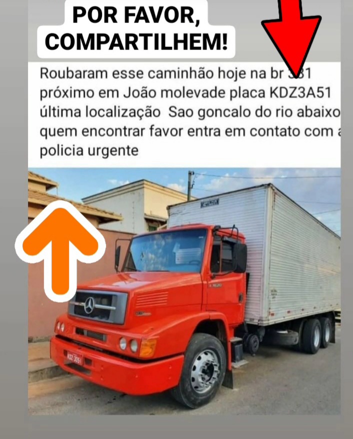 De acordo com as informações, o caminhão é um Mercedes Benz, de cor vermelha, com placa KDZ3A51, de Contagem. Indivíduos armados teriam abordado o veículo, anunciado o assalto e ameaçado o condutor.