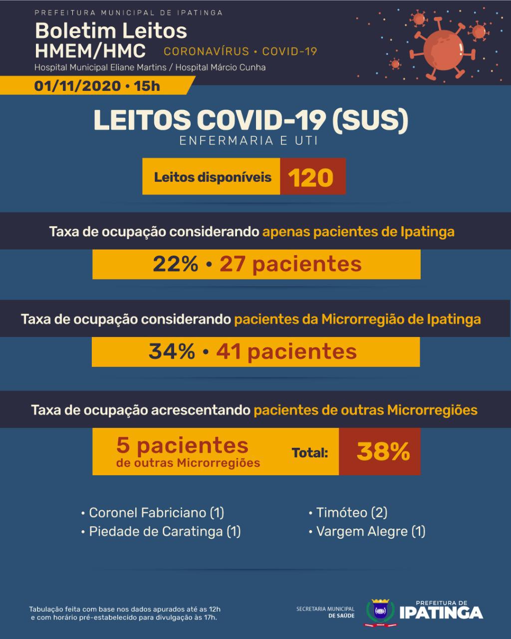 Com a confirmação dos novos óbitos, Ipatinga soma 218 pessoas que perderam a vida por complicações da doença.