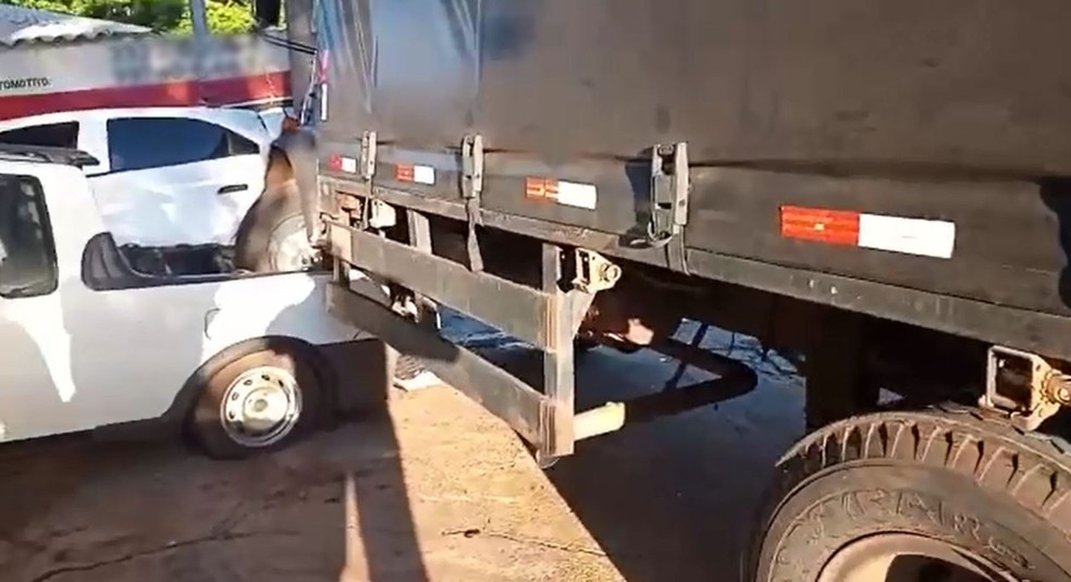Conforme a Polícia Militar, o motorista do caminhão estacionou o veículo que, logo em seguida, apresentou problemas no freio de mão e desceu a rua. O caminhão atingiu dois carros estacionados numa oficina e um poste.