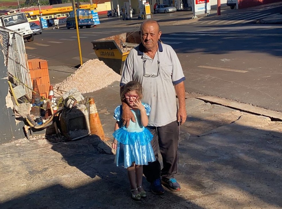 O homem que aparece na imagem correndo é Sérgio Aparecido Moreira, de 73 anos, que salvou a vida da menina de 4 anos ao perceber a aproximação do veículo e retirá-la do local às pressas.