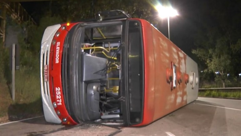 Veículo do transporte coletivo perdeu o controle após falha nos freios; pista ficou parcialmente interditada
