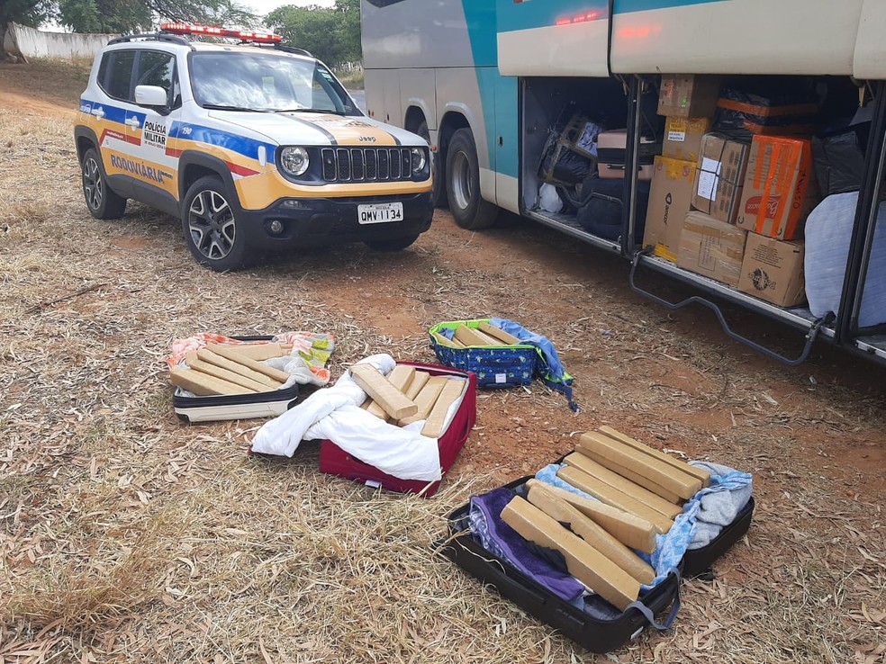Nessa terça-feira (2), a Polícia Militar Rodoviária (PMR) apreendeu mais de 70,9 quilos de maconha. A droga estava em um ônibus, que seguia de São Paulo para Irecê, na Bahia. A droga foi encontrada na rodovia MGC-122, em Monte Azul, na região Norte de Minas Gerais.