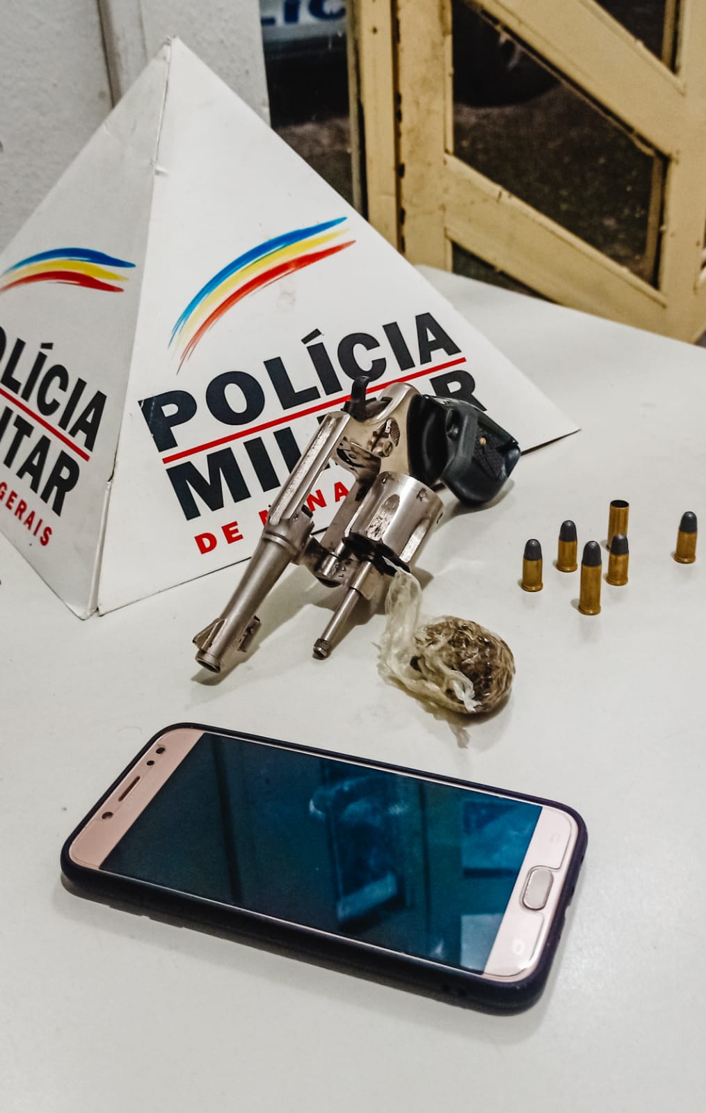 Durante a varredura no local da fuga, as autoridades encontraram um revólver abandonado pelo suspeito. Uma inspeção adicional no veículo resultou na descoberta de uma porção de maconha.
