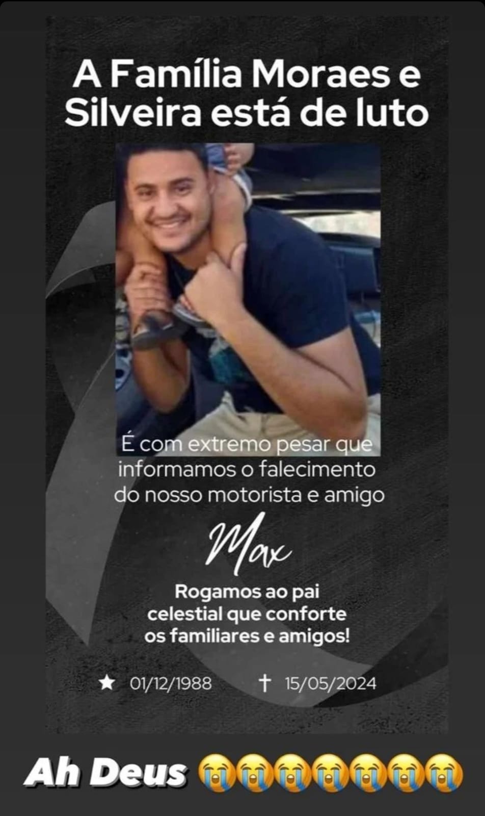 Max Almeida faleceu no dia 15 de maio, após não resistir aos ferimentos. O corpo foi transportado do Ceará para Coronel Fabriciano, sendo enterrado no Cemitério Senhor do Bonfim no dia 19 de maio. Ainda não há informações detalhadas sobre o velório e enterro do do filho.