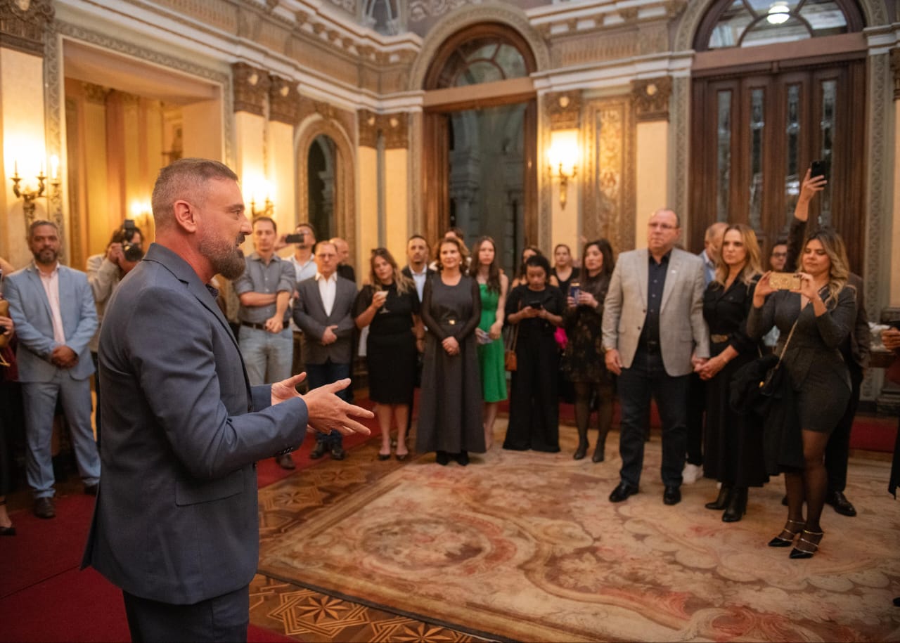 O secretário de Cultura e Turismo recebeu os jornalistas no Palácio da Liberdade. O governador de Minas Gerais, Romeu Zema, participou remotamente, já que estava em viagem pelo Norte do estado.