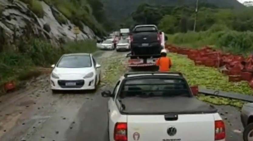 Segundo informações repassadas ao Plox, o motorista teria tentado desviar de um buraco na pista, perdeu o controle e o caminhão acabou tombando. No acidente, a carga se espalhou pela rodovia e acabou saqueada por pessoas que passavam pelo local.