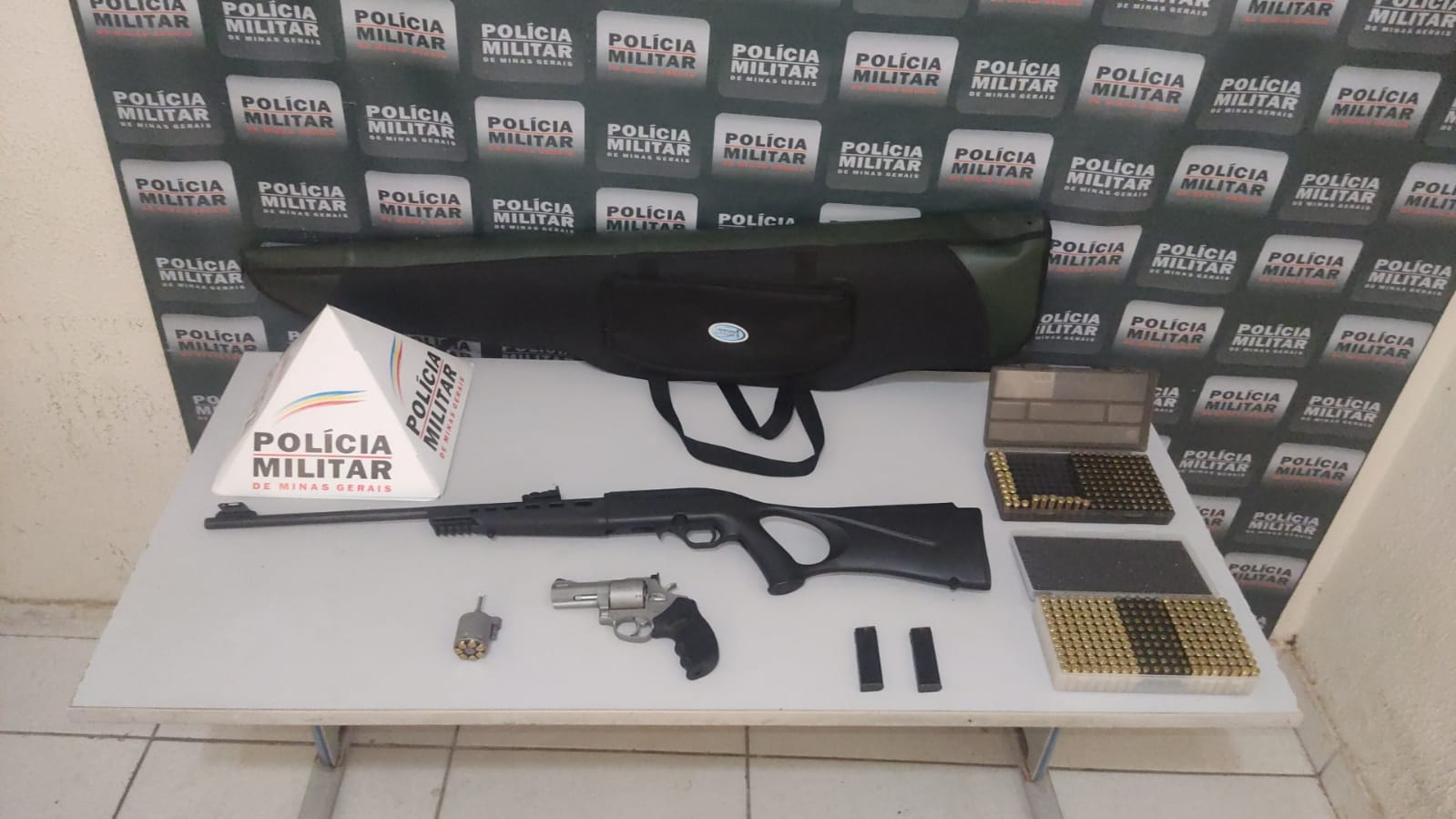 Na manhã desta quinta-feira (3), a Polícia Militar Rodoviária apreendeu duas armas de fogo com várias munições, na rodovia MGC-451, no KM 382, próximo ao distrito de Xonin de Cima, em Governador Valadares. Um homem foi preso junto com os materiais.