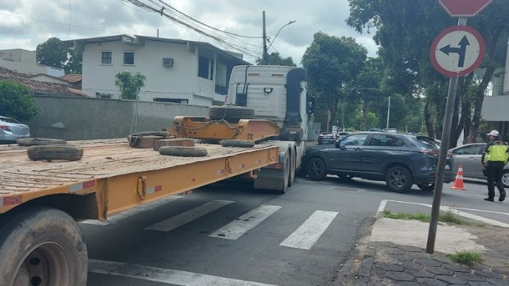 Vídeo: carro colide com carreta e trânsito é interditado em avenida de Ipatinga
