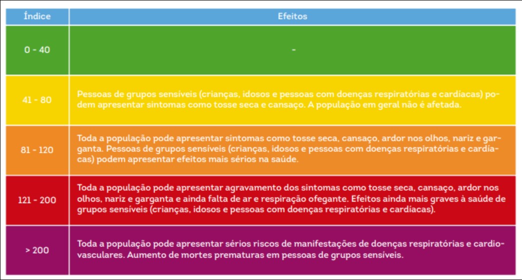 A Resolução CONAMA nº 491/2018, que dispõe sobre padrões de qualidade do ar, estabelece algumas diretrizes para o cálculo e determinação das faixas do IQAr. O cálculo do IQAr deve ser feito utilizando a equação 1 do Anexo IV, para cada um dos poluentes monitorados. Para a definição da primeira faixa de concentração do IQAr deve ser utilizado como limite superior o valor de concentração adotado como Padrão Final (PF) para cada poluente. As demais faixas de concentração do IQAr foram definidas pelo Guia Técnico para o Monitoramento e Avaliação da Qualidade do Ar, do Ministério do Meio Ambiente, conforme previsto no Art. 8º da Resolução CONAMA nº 491/2018.