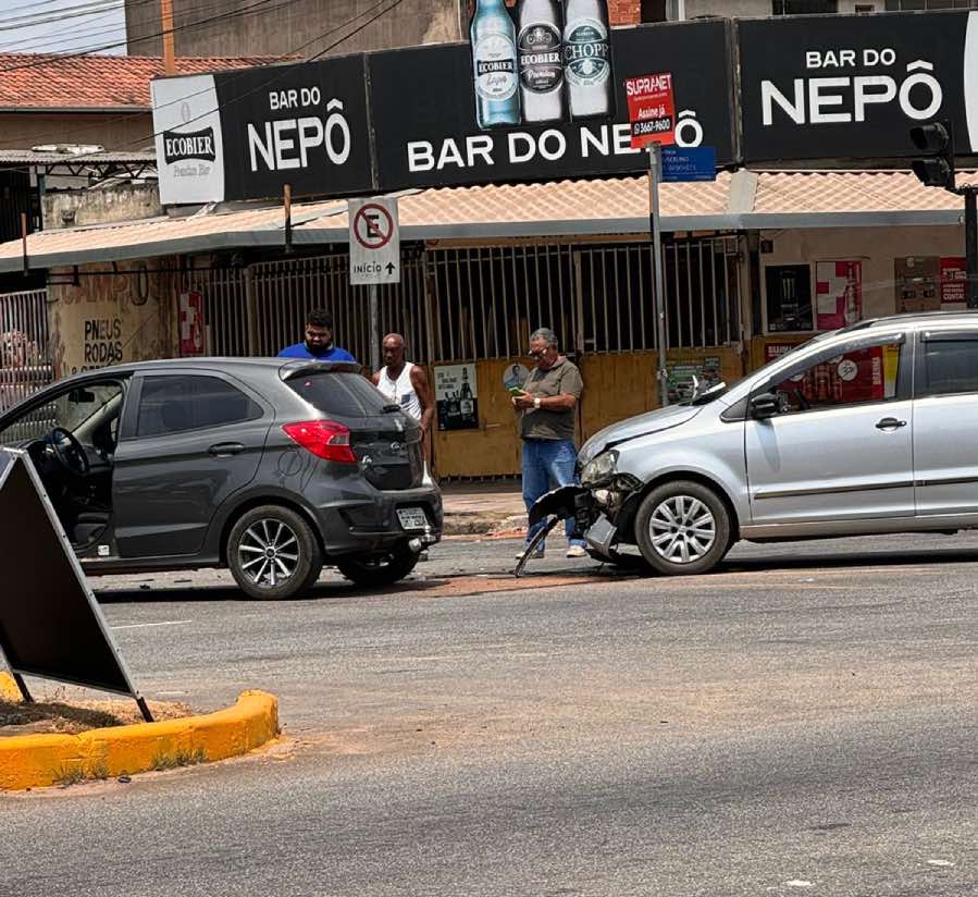 Após a batida, os condutores saíram dos veículos para avaliarem os danos materiais.