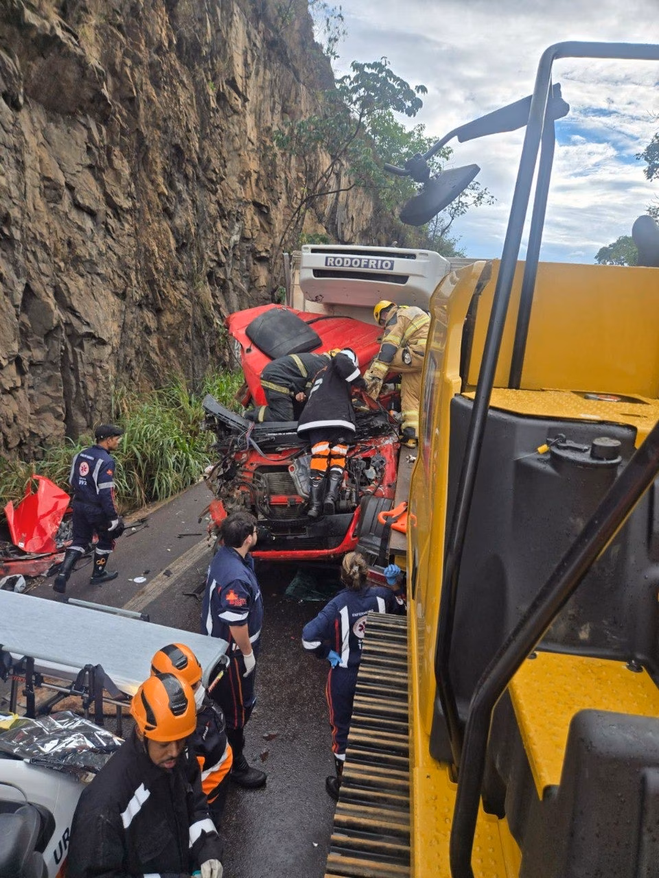 Chove forte na região desde o momento do acidente, o que dificulta o atendimento às vítimas e a remoção dos veículos pesados da pista. Equipes do Corpo de Bombeiros e da concessionária Nova 381 seguem em atuação no local.