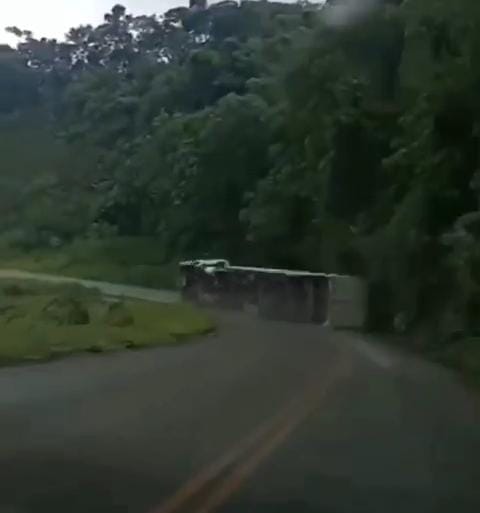 Um vídeo, que circula nas redes sociais mostra um momento exato que uma carreta, carregada de morango e uva, tombou. O acidente ocorreu na rodovia LMG-884, em Repouso, no Sul de Minas Gerais.