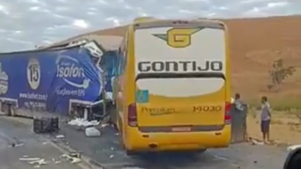 Colisão entre carreta e ônibus da Gontijo na BR-116 deixa mortos e feridos