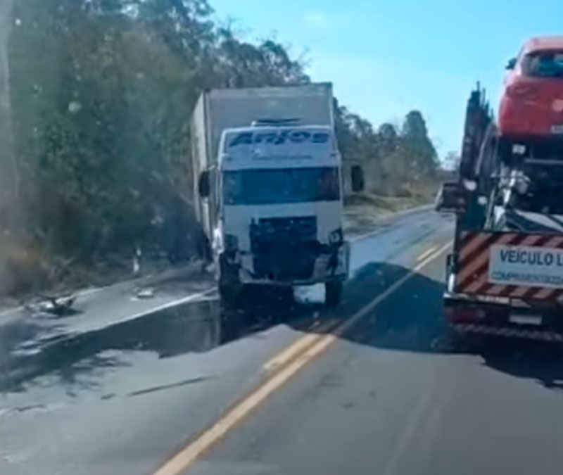 O condutor do caminhão relatou aos militares que um pneu do carro teria estourado e, nesse momento, o motorista do carro teria perdido o controle da direção e ocorrido a colisão.