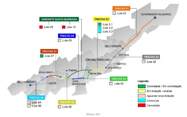 Porém, as obras só devem começar a partir do segundo ano da concessão, prolongando-se até o oitavo. Durante o primeiro ano (2024), serão realizados trabalhos iniciais para garantir condições mínimas de segurança e trafegabilidade, incluindo o reforço na sinalização. Por outro lado, as melhorias vão impactar no bolso dos motoristas, que poderão enfrentar um custo extra entre R$ 55 e R$ 80 devido às cinco praças de pedágio que serão instaladas ao longo do trecho, custando entre R$ 11 e R$ 16 cada. Essas praças serão localizadas em Caeté, João Monlevade, Jaguaraçu, Belo Oriente e Governador Valadares, com tarifas diferenciadas para pista simples e dupla.