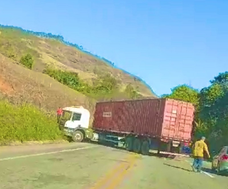 Em imagens publicadas nas redes sociais, é possível ver o veículo uma manobra chamada de efeito canivete, mais popularmente conhecido como “fazer o L”. Basicamente, é quando o implemento ou carreta sai de lado e pode chegar a colidir com o próprio cavalo mecânico (cabine).