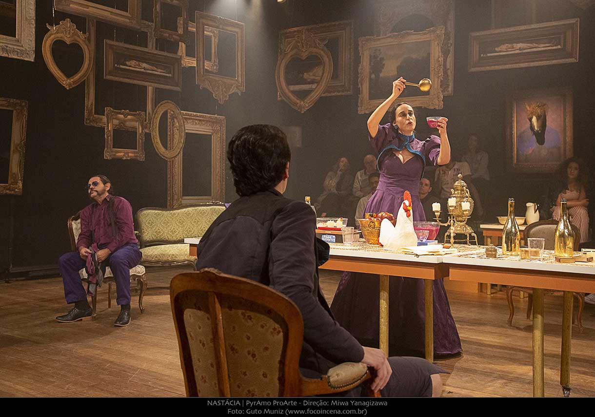 Com direção de Miwa Yanagizawa e dramaturgia de Pedro Brício, o espetáculo une teatro e videoarte para contar a história de uma das mais instigantes personagens femininas da literatura universal. Para Flávia Pyramo, idealizadora do projeto e intérprete de Nastácia, a personagem é um exemplo de mulher que transformou fragilidade em força, que lutou por sua dignidade com muita coragem, mesmo vivendo um turbilhão interno e uma violência terrível. “Interpretar Nastácia é conviver com um coração disparado e olhos alagados. Toda vez que sou atravessada pelo pensamento de reencontrá-la, uma alegria extasiante vibra em todo canto do meu corpo, mas junto vem a dor de um estômago apertado, pois sei que contarei essa história olhando nos olhos de muitas protagonistas dessa tragédia real que é a violência contra a mulher", afirma.