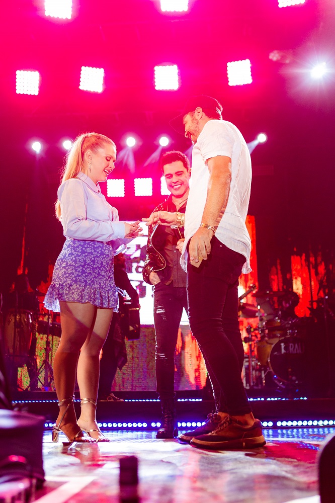 O produtor subiu ao palco e Zezé usou o microfone para chamar a noiva, que estava na plateia. Adriana Peixoto, de 23 anos, contou à reportagem do Plox que está emocionada até hoje “estou emocionada até agora, subi no palco tremendo; meus familiares e amigos estavam na plateia, foi pura emoção” disse.