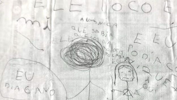 Desenhos encontrados por uma irmã mais nova da vítima e entregues à mãe,