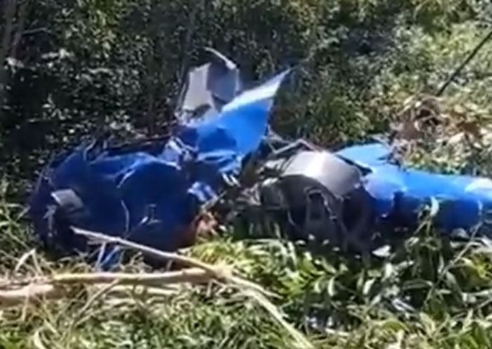 Veja o vídeo do momento que o helicóptero cai no meio da mata: