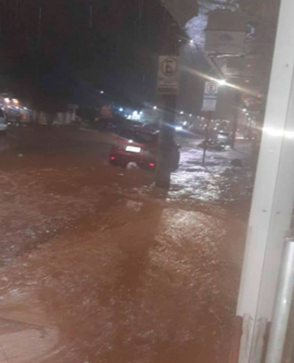 Vídeos que circulam em grupos de WhatsApp mostram ruas da cidade alagadas. Veja: