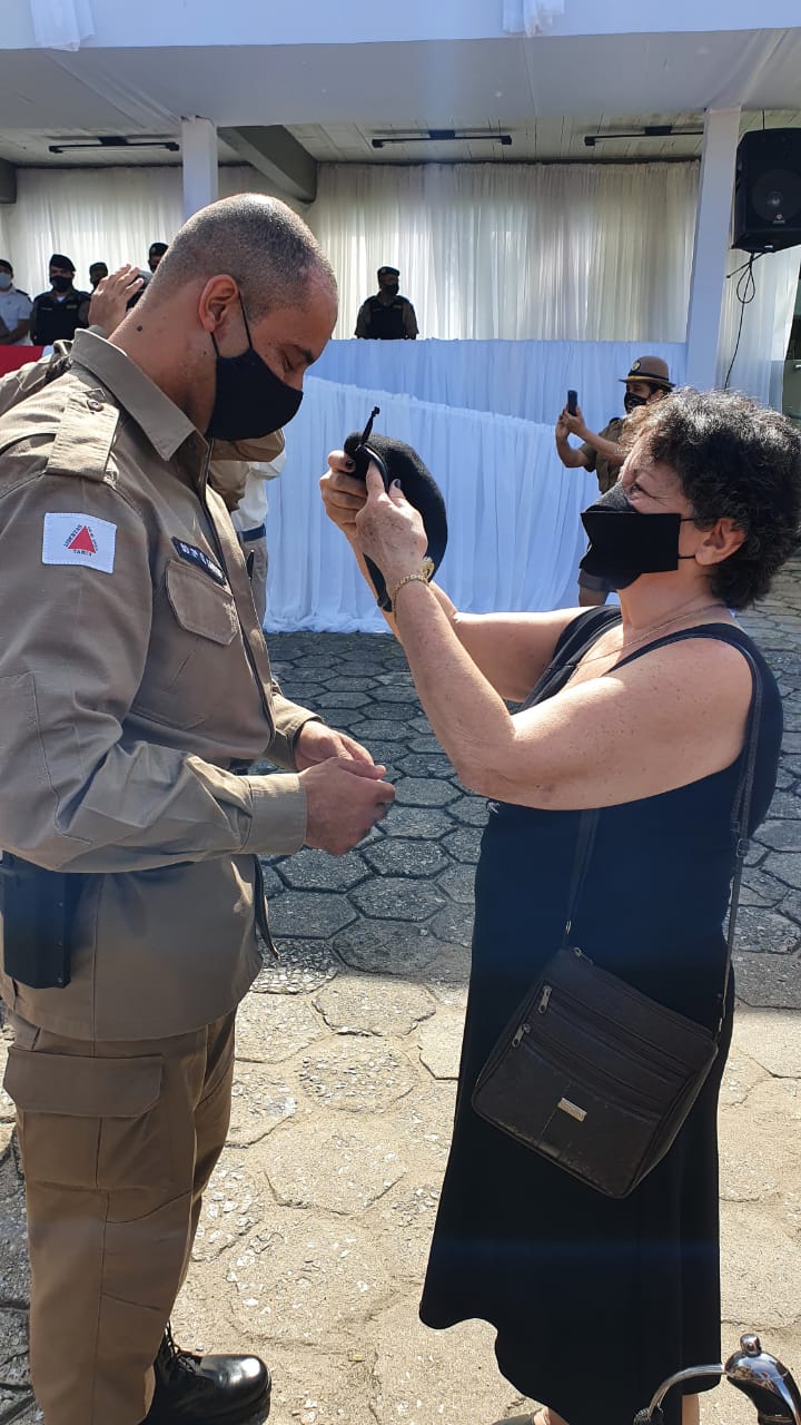 Após a entrega da boina pelos padrinhos, os discentes foram apresentados ao pavilhão Nacional e prestada a devida continência, como forma de respeito à bandeira. Em seu discurso aos novos militares, o Coronel Rômulo, ressaltou as situações a que os militares estão expostos no trabalho diário, e como é importante o apoio da família.
