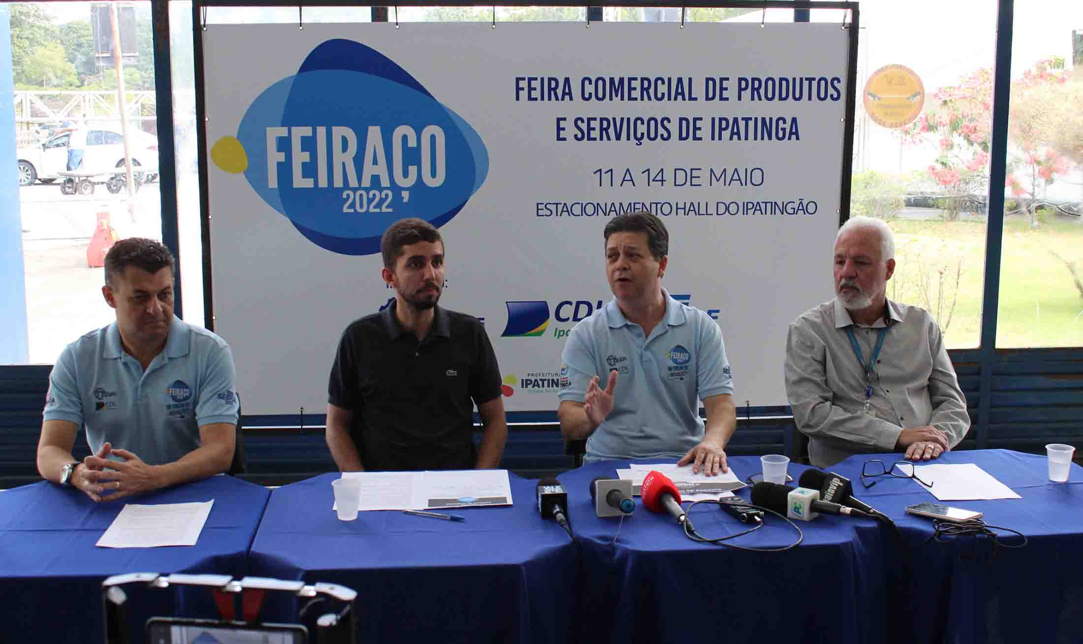 Na manhã desta sexta-feira (6), foi realizada uma coletiva de imprensa sobre a Feiraço, no Hall do Ipatingão. Participaram o presidente da Aciapi, Luís Henrique Alves; o presidente da CDL de Ipatinga, Amaury Gonçalves; o prefeito de Ipatinga, Gustavo Nunes; e o gerente regional do Sebrae, Fabrício César Fernandes.