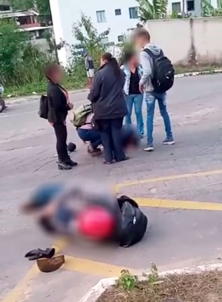 Conforme os relatos dele, no momento em que passava próximo de uma rotatória, a bicicleta teria cruzado a avenida e ele não conseguiu parar a tempo, ocorrendo a colisão e os dois vindo ao chão. O condutor da moto sofreu um hematoma sobre o olho direito e sentia dores na perna direita e na costela do lado direito. Ele foi atendido pela equipe do Corpo de Bombeiros e encaminhado para um hospital particular, em Coronel Fabriciano.