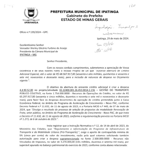Ipatinga foi uma das cidades selecionadas pelo PAC, Programa de Aceleração, do governo federal, para ter acesso a uma linha de investimento para renovação frota dos ônibus do transporte público. São cerca de R$ 65 milhões para aquisição de 88 veículos: 53 ônibus grandes e 35 micro-ônibus. Trata-se de uma uma linha de crédito com baixa taxa de juros, voltada para municípios com mais de 150 mil habitantes. Mas para isso, os vereadores precisam autorizar a prefeitura a incluir essa despesa no orçamento de 2024. Nesta quinta-feira, o projeto de lei enviado pelo executivo municipal foi aprovado em primeiro turno. Está prevista para às 16h a segunda votação. Acompanhe os detalhes na Live.