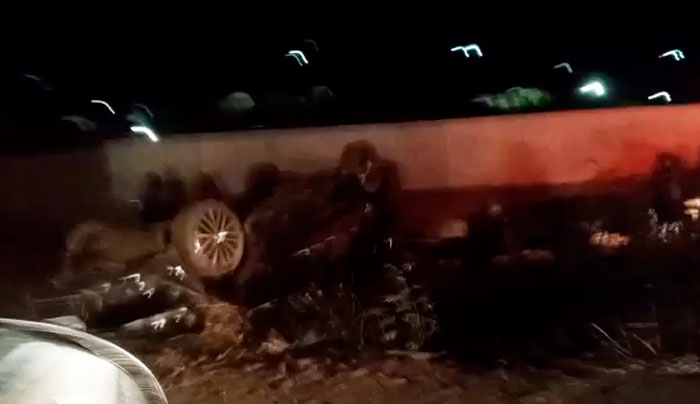 Imagem feita por populares mostra um veículo capotado. Foto: reprodução/ WhatsApp