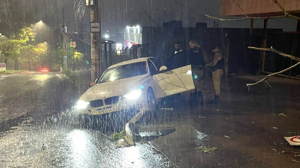 Suspeito tentou escapar da PM na madrugada deste sábado (9) e acabou colidindo o veículo; ele foi encaminhado à Delegacia de Atendimento à Mulher