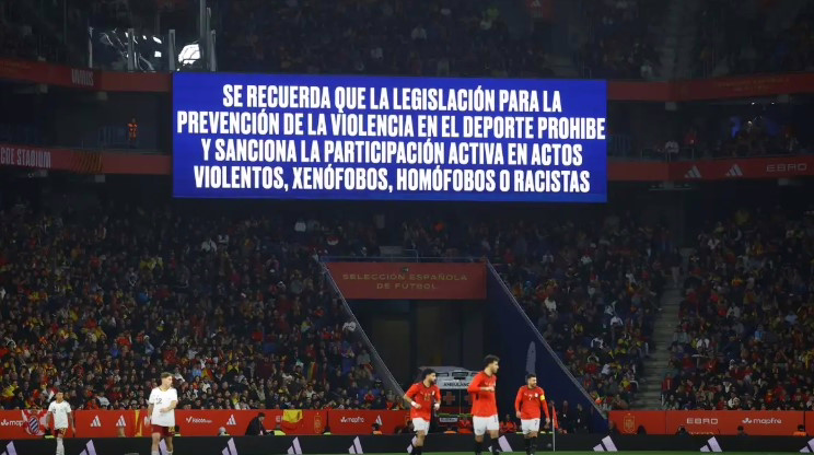 Em resposta, a RFEF usou o sistema de som e as telas gigantes do estádio para pedir o encerramento dos cânticos no intervalo. A medida, no entanto, não surtiu o efeito esperado naquele setor das bancadas e, de acordo com o texto, acabou incentivando grupos reduzidos de torcedores em outras áreas.