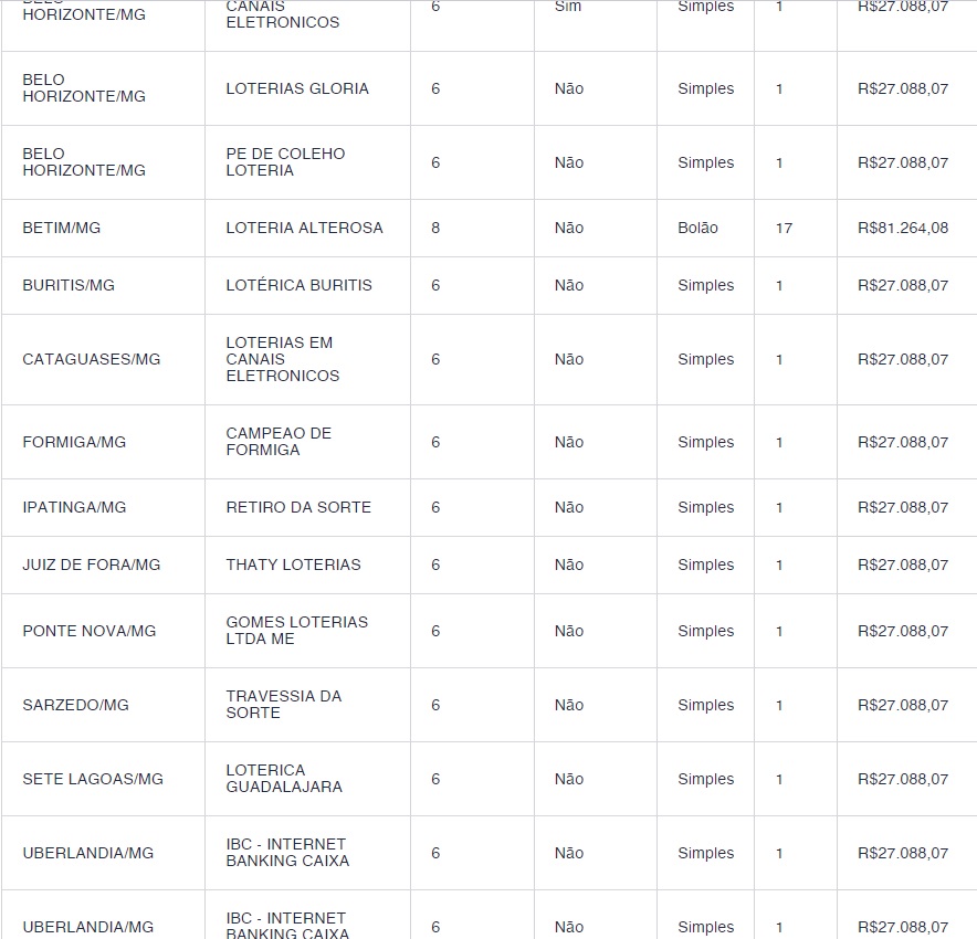 Em Minas Gerais, 14 apostas ganharam na quina. Uma delas em Ipatinga. A aposta ganhadora do Vale do Aço foi feita na loteria Retiro da Sorte.