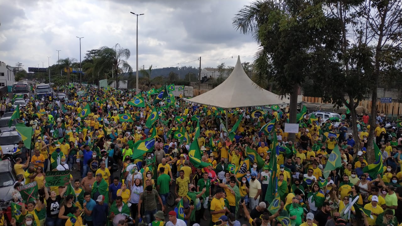Apoiadores do presidente Jair Bolsonaro realizaram carreata e se encontraram no bairro Horto, em Ipatinga, no Vale do Aço em Minas Gerais. No local, os manifestantes protestaram em prol da democracia e demonstraram apoio ao presidente.