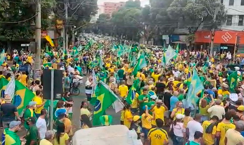 Nesta terça-feira (7), foi realizada uma manifestação de apoio ao presidente Jair Bolsonaro, no dia em que é comemorado o dia da Independência. A concentração ocorreu na esquina da avenida Minas Gerais com a rua Marechal Floriano.
