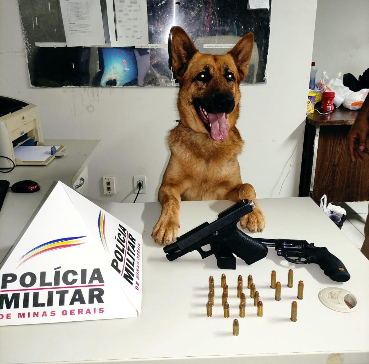 Após atuação do cão farejador Lion, foram encontradas enroladas em camisas, duas armas de fogo, sendo uma pistola calibre .9mm e um revólver calibre .38. Também foram encontradas 17 munições intactas calibre .9mm e cinco munições intactas calibre .38.