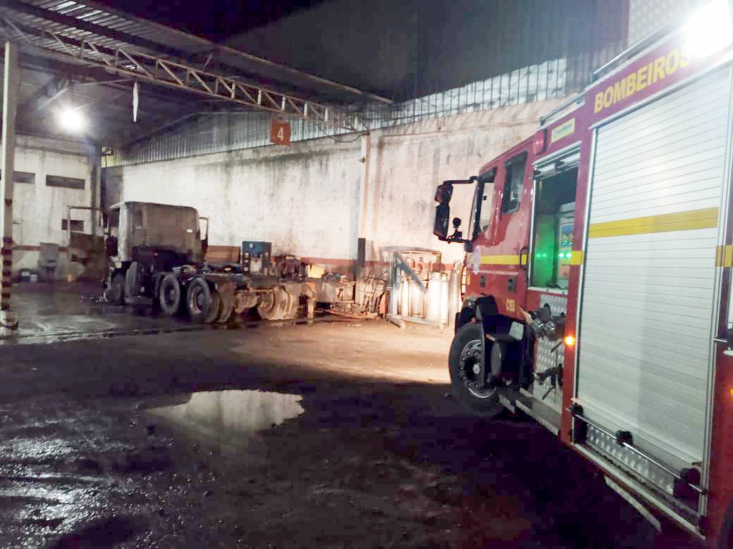 Militares do Corpo de Bombeiros controlam chamas e evitam propagação para o galpão; suspeita de curto-circuito após lavagem