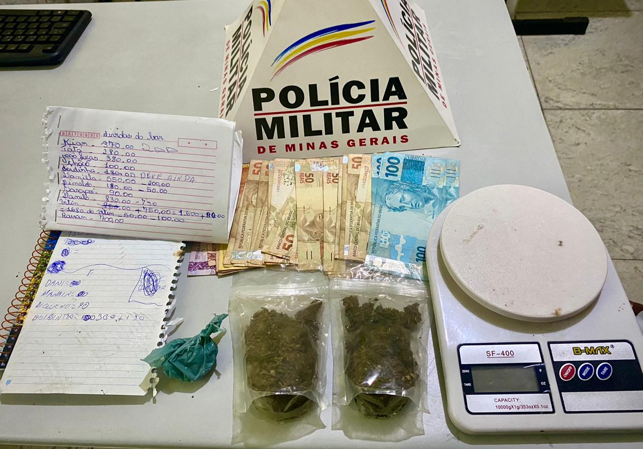 De acordo com a PM, os militares faziam uma operação policial no bairro Canaã e após receberem informações de um ponto de tráfico de drogas, se deslocaram para realizar a abordagem. Ao perceber a chegada dos policiais, o jovem arremessou pela janela da casa dois pacotes de maconha. O indivíduo foi abordado e dentro da residência foi encontrado duas porções grande de maconha, a quantia de R$ 1.935,00, uma balança de precisão e um caderno com anotações.