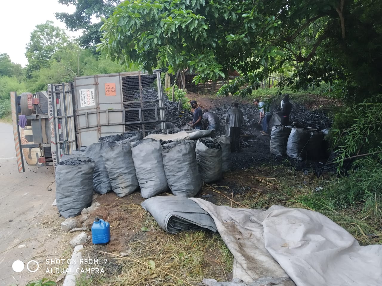 Segundo informações, o veículo seguia sentido a Valadares e, no final de uma descida conhecida como Serra do Sabão, o condutor perdeu o controle da direção do veículo e capotou às margens da rodovia. A carga de carvão ficou espalhada e o motorista sofreu apenas escoriações leves.