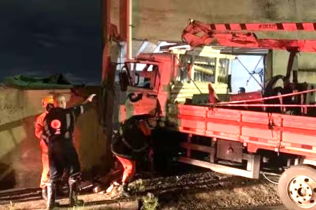 Um grave acidente ocorrido na noite da última quarta-feira (7 de fevereiro), no bairro Jatobá, localizado na região do Barreiro em Belo Horizonte, resultou em um caminhão invadindo parcialmente uma residência após colidir com um carro e uma moto na rua do Carmo. O impacto da colisão deixou o motorista preso às ferragens, enquanto o ajudante que o acompanhava conseguiu evitar ferimentos ao saltar do veículo antes do choque.