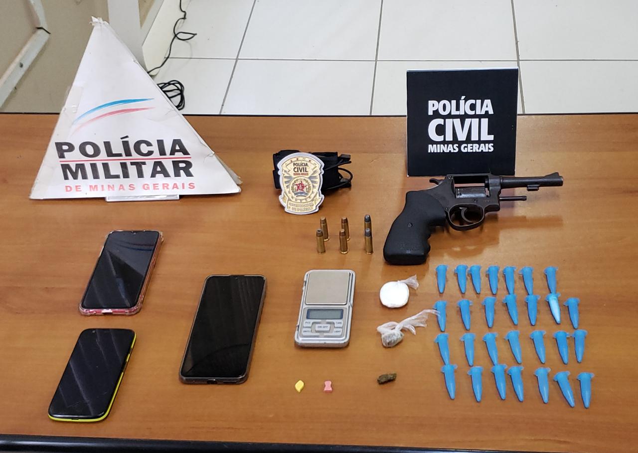 Durante operação realizada hoje (8/6) entre as Polícias Civil e Militar de Coronel Fabriciano, uma pessoa foi presa na posse de uma arma de fogo raspada, calibre 38, carregado com 06 munições, porções de cocaína, maconha e esctasy, no bairro Recanto Verde, em Coronel Fabriciano.