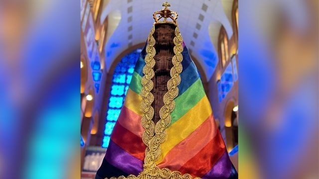 Foto foi registrada durante romaria de grupo LGBTQ+ católico no Santuário de Aparecida.