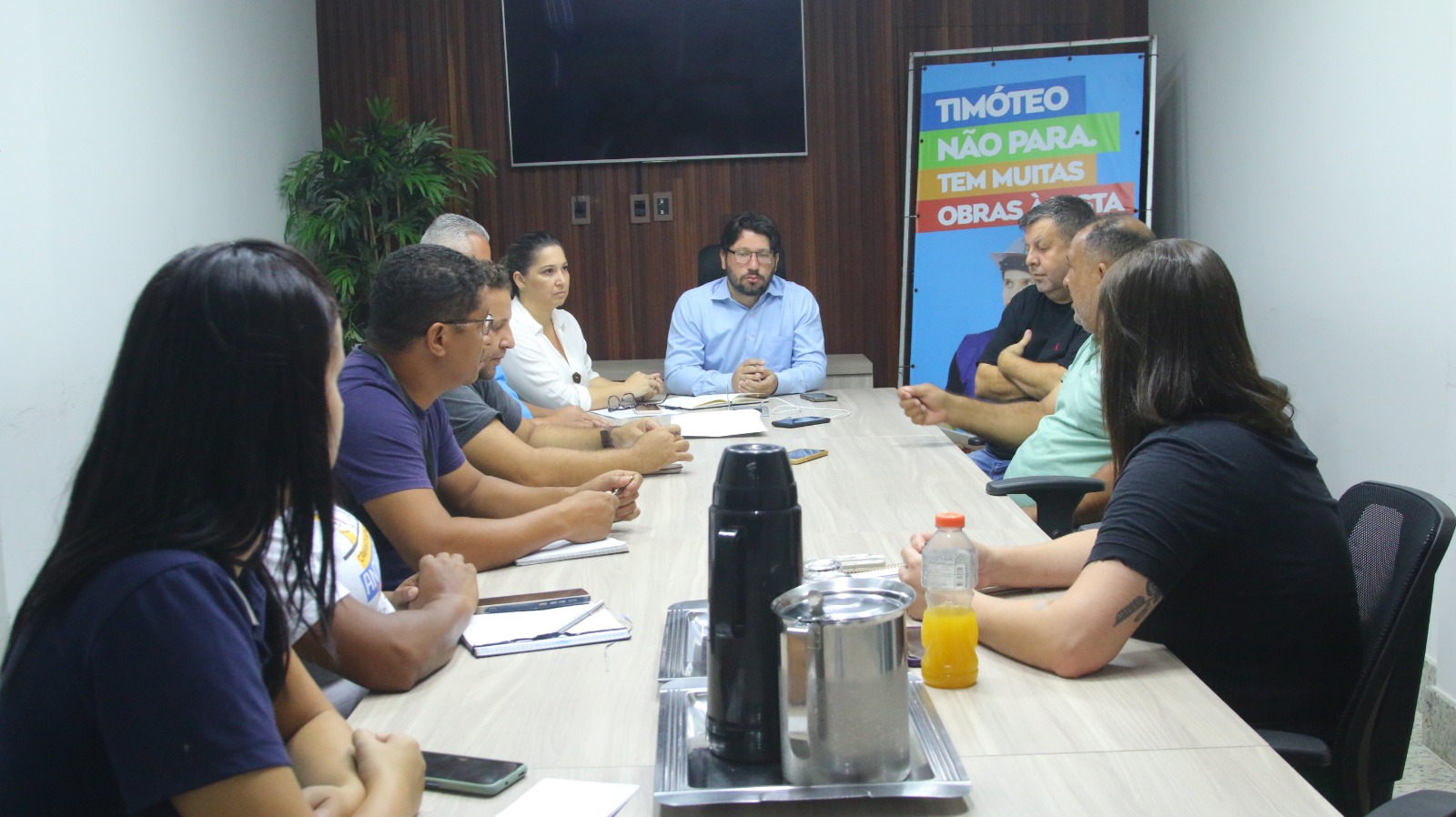 Participaram do encontro o prefeito Douglas Willkys, o secretário de Governo e Comunicação Eduardo Morais, a secretária de Saúde Ana Paula Campos, além de servidores dos setores de Zoonozes, Obras, Limpeza Urbana, Meio Ambiente e Fiscalização.