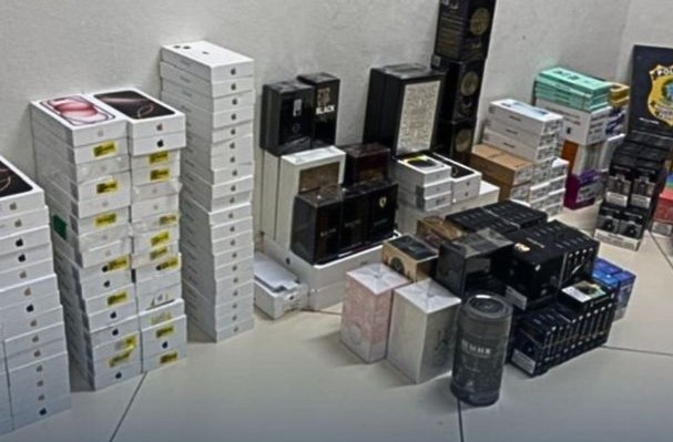 No compartimento de carga e no interior do veículo, os agentes localizaram diversos itens sem nota fiscal, incluindo: