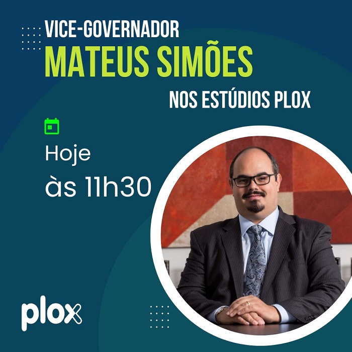Nesta quinta-feira (9), a Plox receberá em seus estúdios o vice-governador de Minas Gerais, Mateus Simões (NOVO). A entrevista está marcada para acontecer a partir das 11h30 e você pode acompanhar tudo pelo site da Plox, pelas redes sociais e é claro, no nosso Youtube.