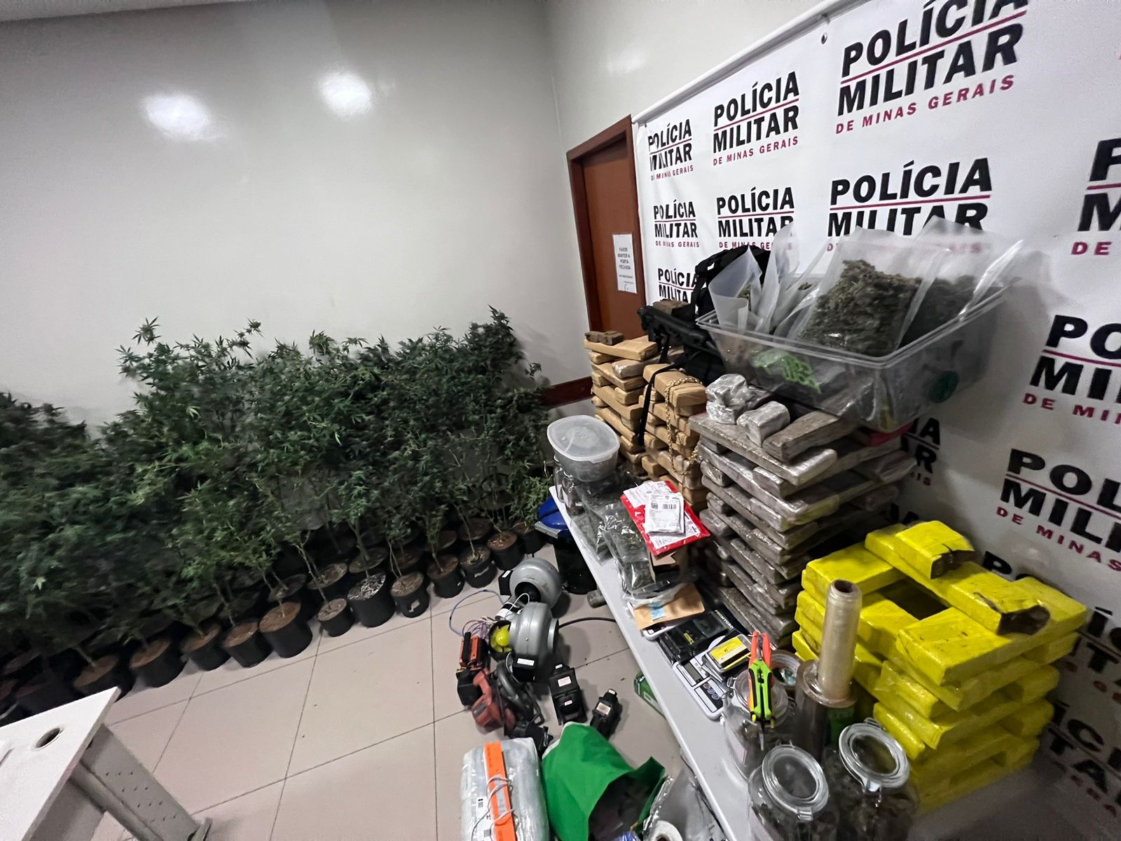 - diversos materiais utilizados para o cultivo e preparação de maconha
